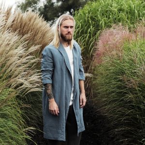 Mens Linen Bathrobe Jacket Juniper In Blue Grey