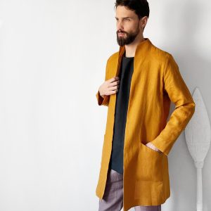 Trench Coat Men Linen Jacket For Man Stylish