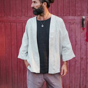 Mens Linen Kimono Jacket Matshu Cardigan Gift For