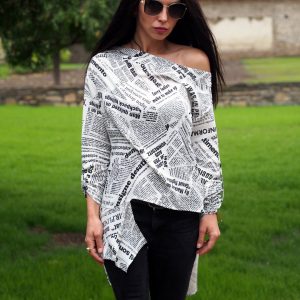 Features: Long sleeves, button front, flared cut
