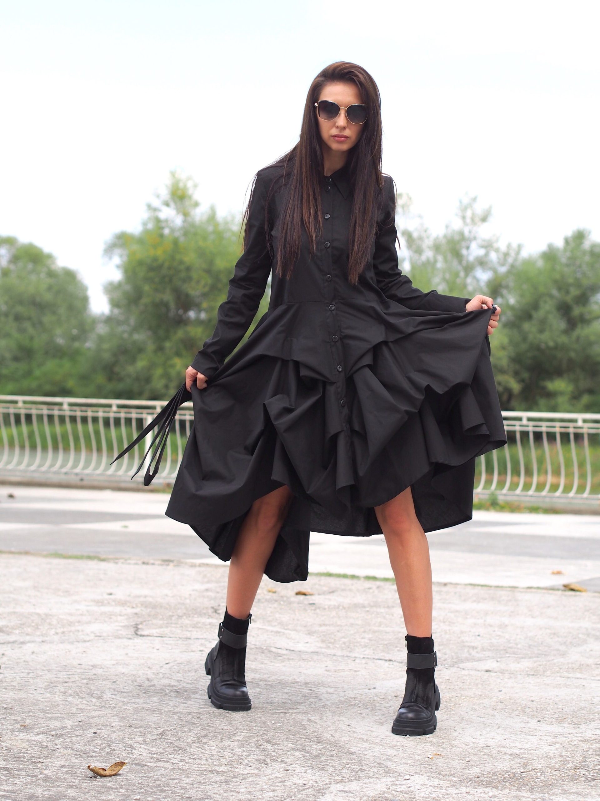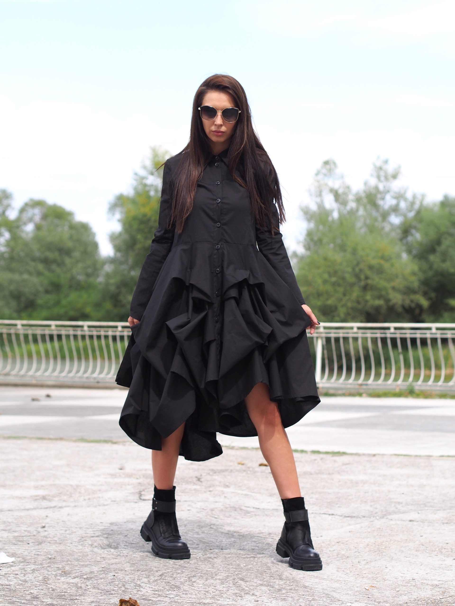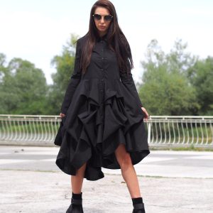 Make a bold yet effortless statement with this black flared shirt dress the perfect combination of comfort and timeless style.