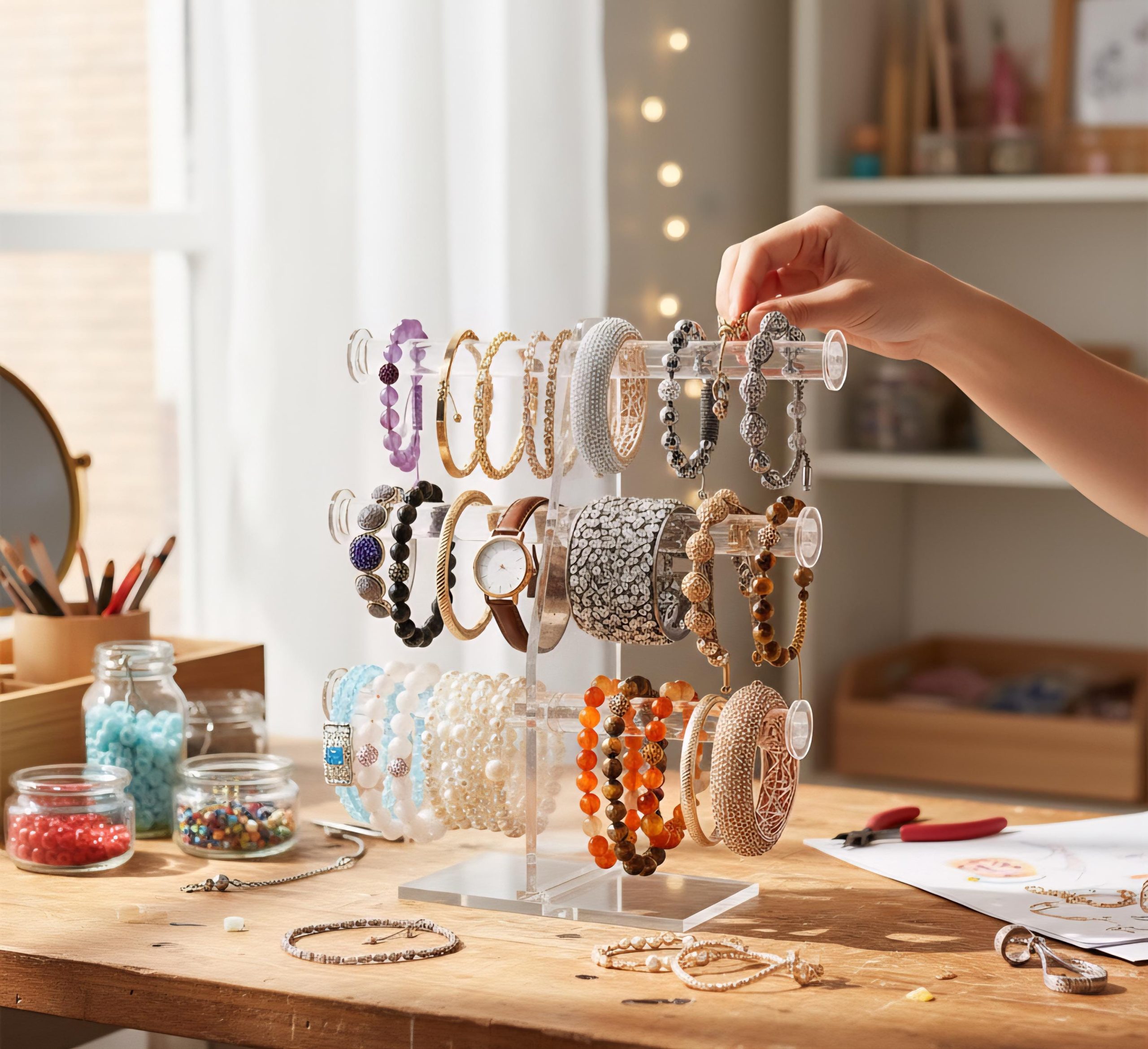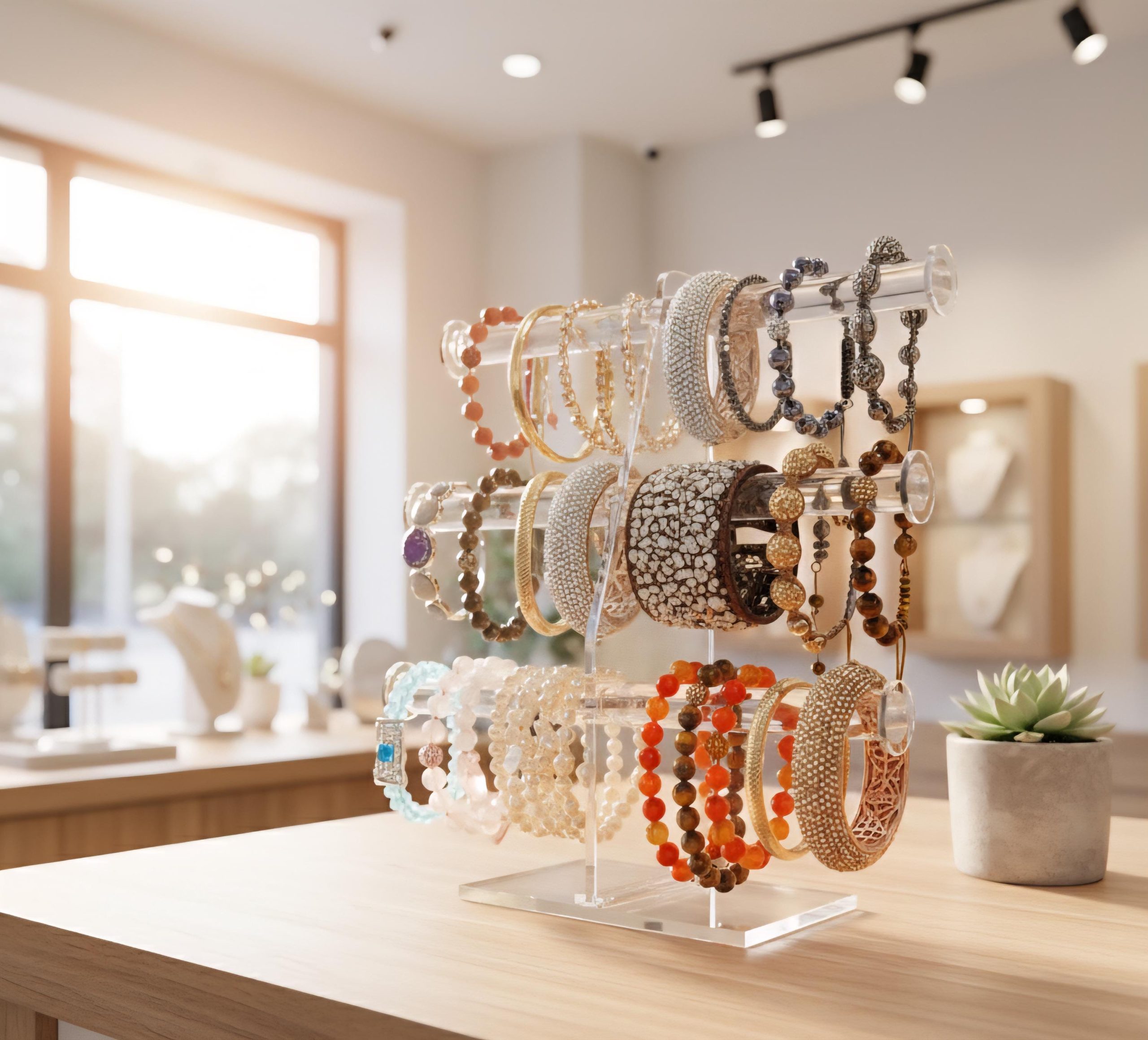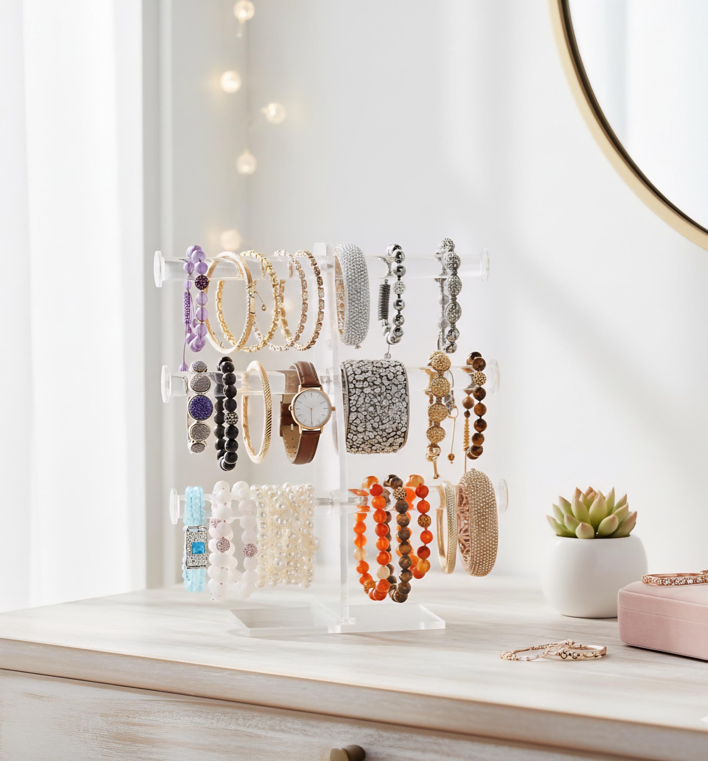 Handmade 3 Tier Clear Acrylic Bracelet Display Stand