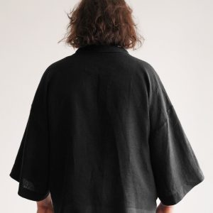 This kimono jacket is made from 100% Linen and is available in a variety of colors.