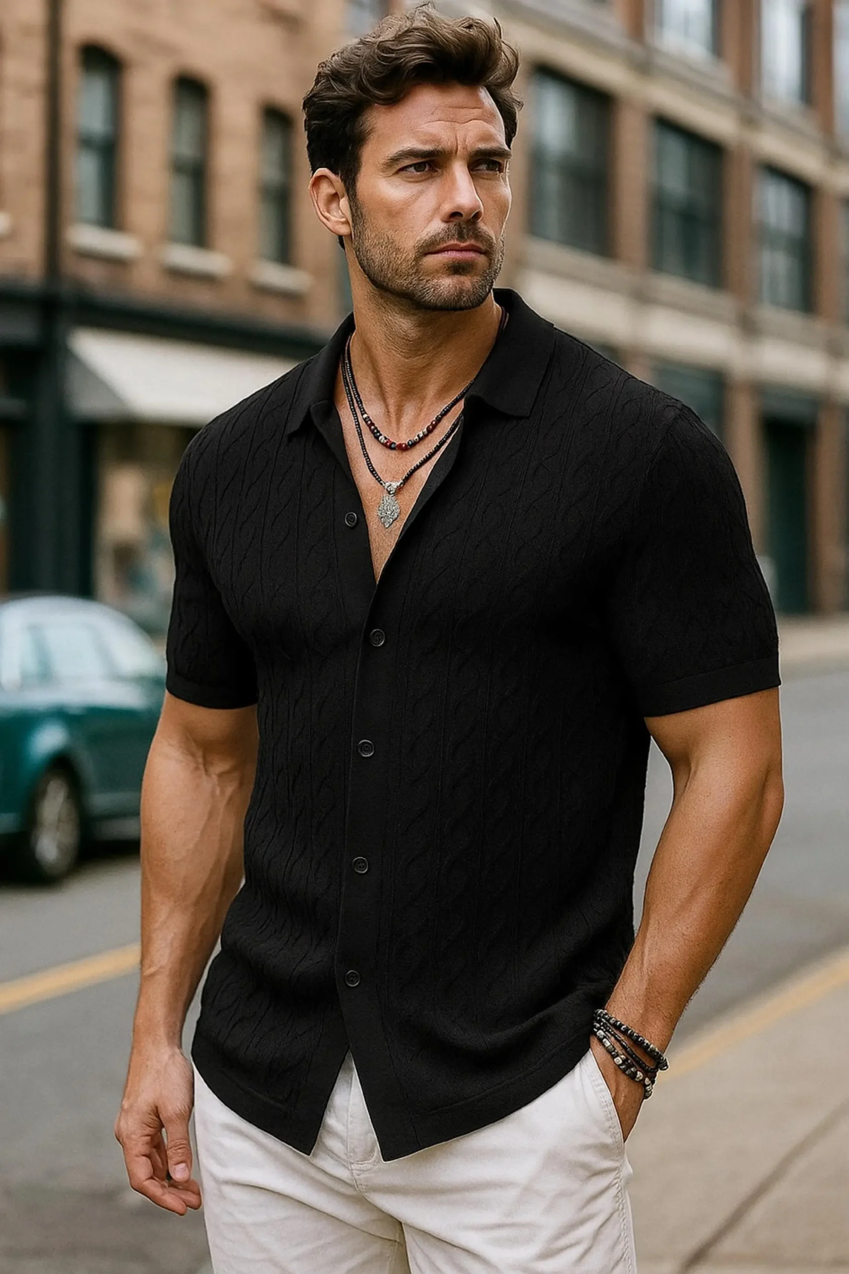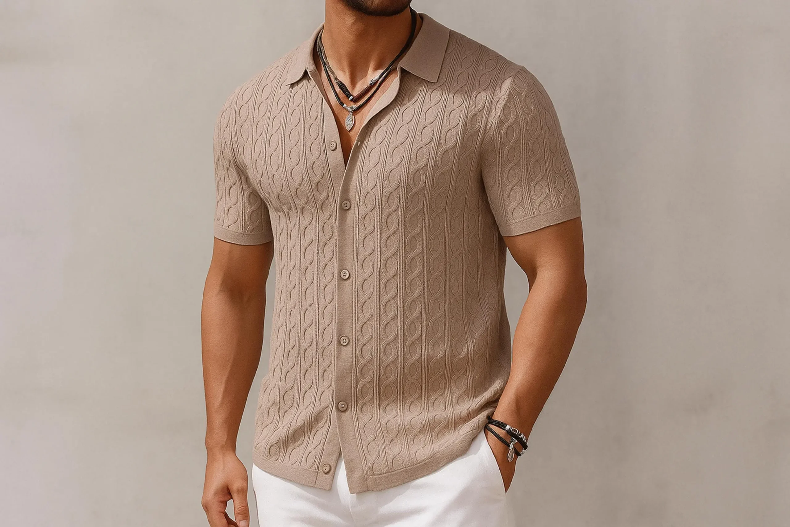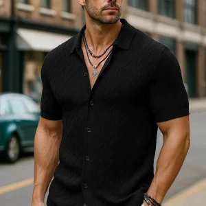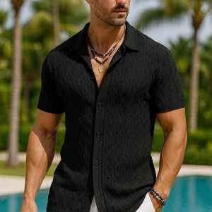 This shirt is a perfect mix of comfort and style. The soft breathable fabric keeps you cool, while the textured knit and button design add a refined yet casual vibe that works for beach trips, summer parties or everyday wear.