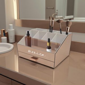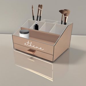 Personalized Handmade Mirrored Acrylic Cosmetic Organizer Large Drawer