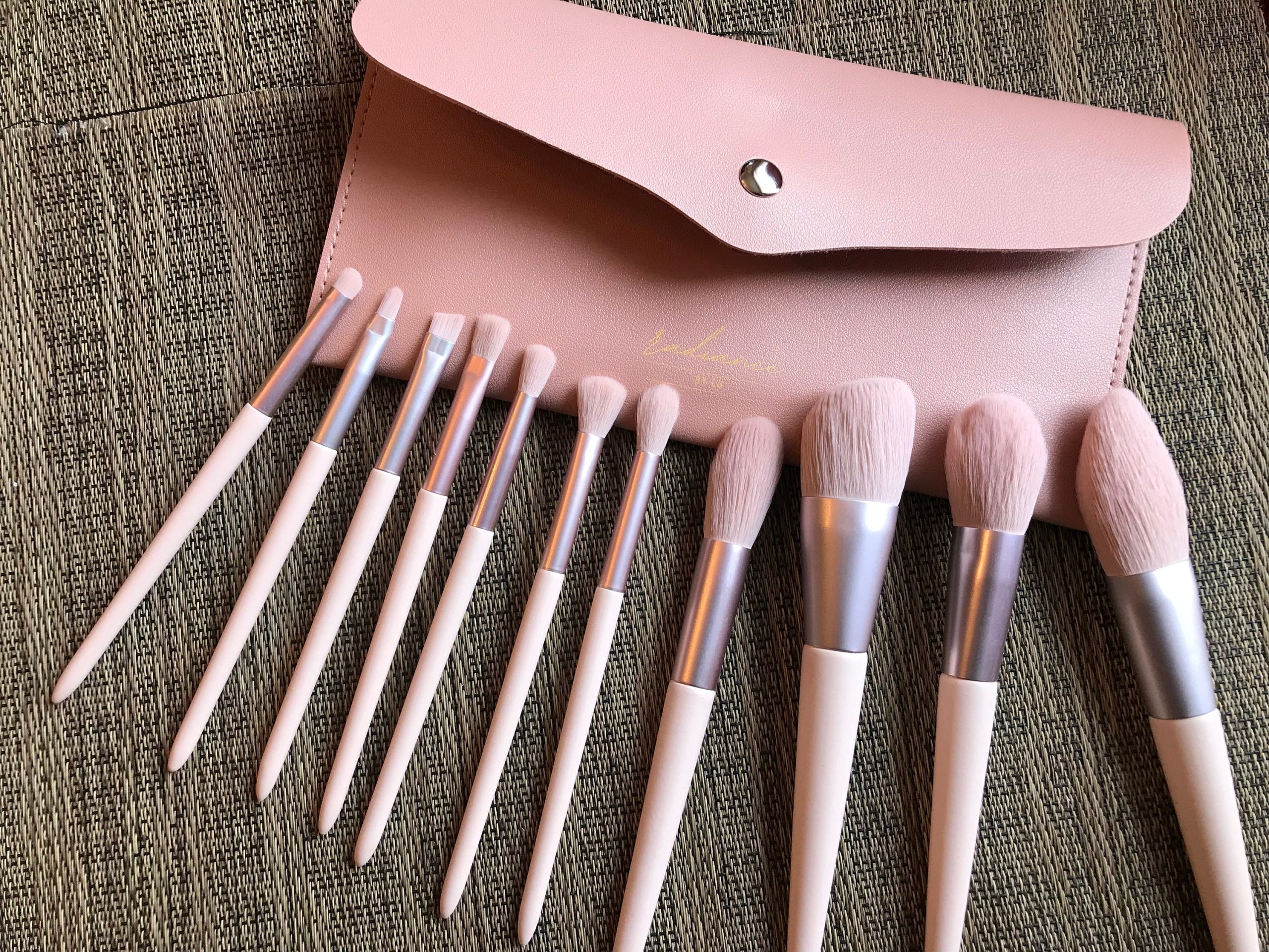 Nude Pink 11 Piece Makeup Brush Set with Vegan Leather Case
