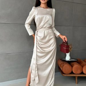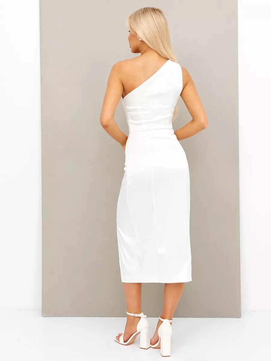White One Shoulder Satin Dress Elegant Silk Midi